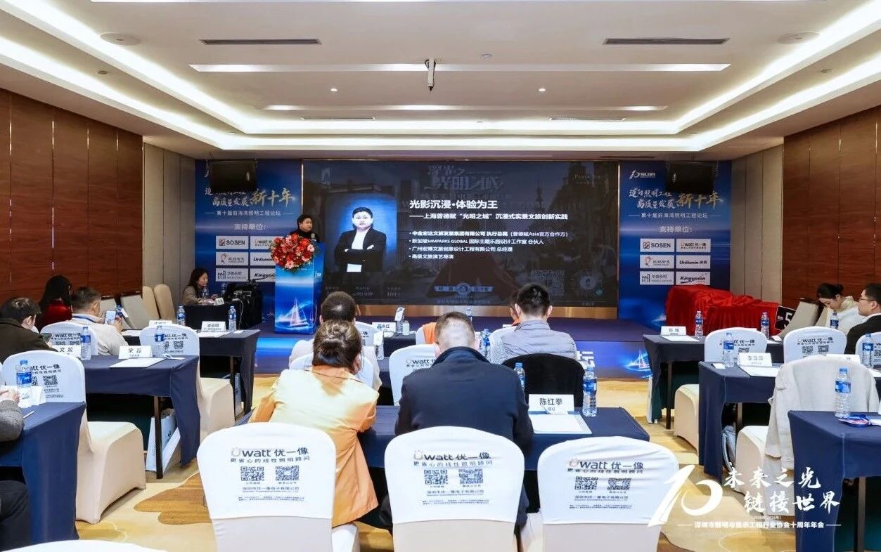 1月6日,深圳市照明与显示工程行业协会(SLDA)成立十周年庆典暨第十届前海湾照明工程论坛在深圳盛大启幕。中金宏达文旅发展集团(下称“中金宏达集团”)执行总裁蔡祖彬,携旗下广州宏博文旅创意设计工程有限公司(下称“宏博文旅”)惊艳亮相,两家企业双双斩获“工程设计领航企业”大奖,蔡祖彬代表集团分享"光影+文旅+IP"深度融合的沉浸式文旅项目。