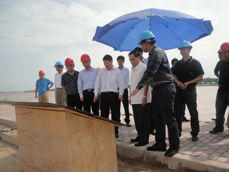 2012年7月27日,老挝政府总理通邢•塔马冯在我司副总工程师李启忠陪同下,视察我司承揽项目管理的万象(老挝)亚欧峰会大酒店施工现场,听取施工方负责人介绍工程进展情况。作为老挝第九届亚欧首脑会议的高端接待设施之一,该项目开工以来,受到老挝政府的高度重视,先后有包括老挝副总理通伦•西苏里、老挝运输部长宋马•奔舍等政府高官前往视察,目前工程进展顺利。