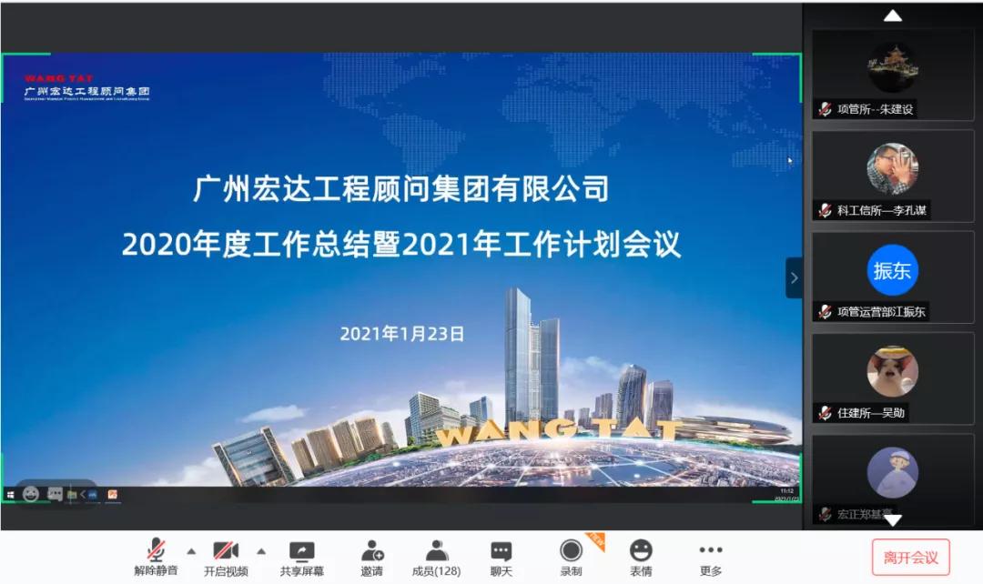 2021年1月23日,广州宏达工程顾问集团2020年度工作总结暨2021年度计划会议顺利召开。会议响应国家疫情防控号召,采用“线下会议+云会议”模式。