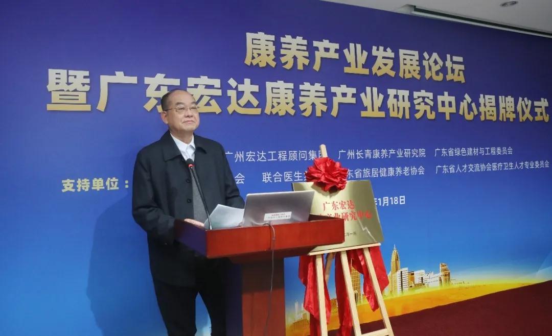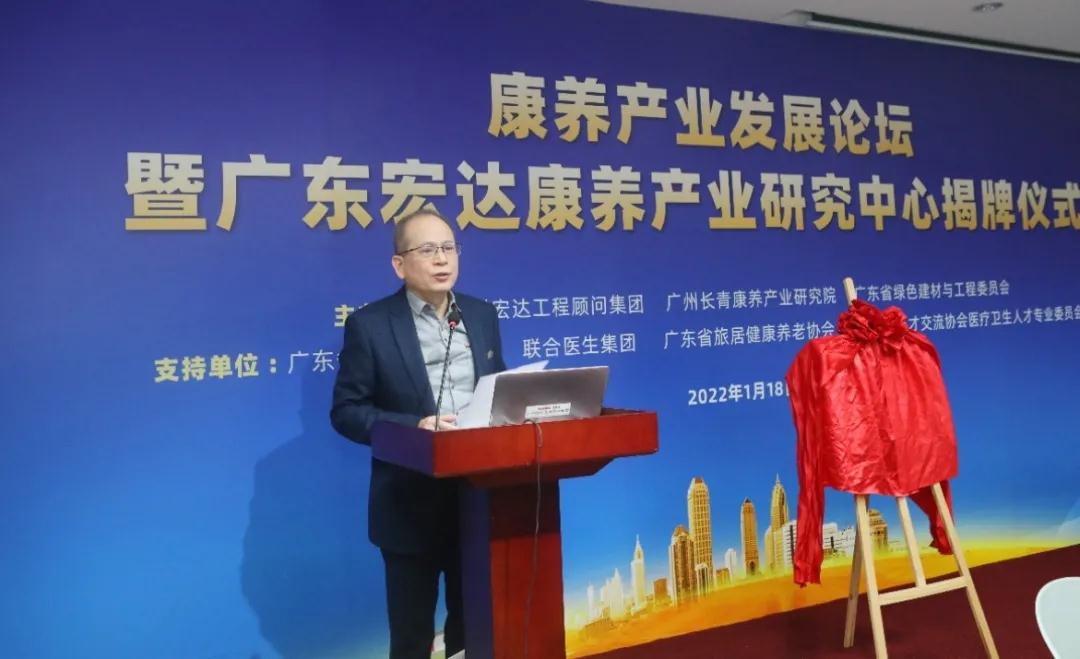 广州宏达工程顾问集团董事长黄沃在致辞中介绍:“广东宏达康养产业研究中心”是以“创新、开放、共享”新发展理念为指引,打造集理论研究、社会服务和咨政参考于一体的康养产业高端智库和合作共享平台。为政府和企业发展康养产业提供技术支持和解决方案,促进康养产业建设的科学性和专业化,打造高质量高水平康养产业集群。